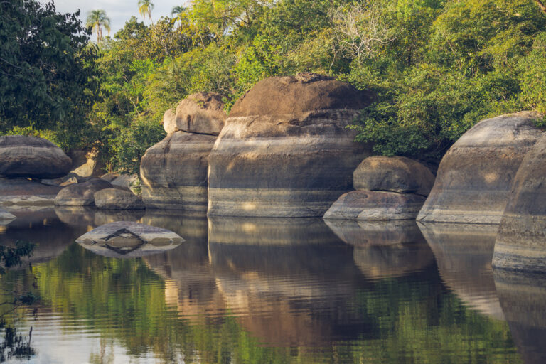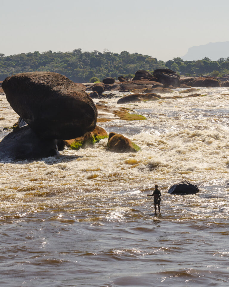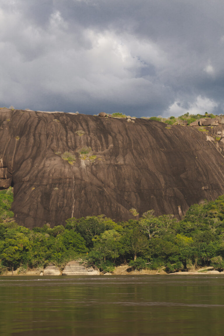Le système fluvial m’a impressionné dès le premier instant : une rivière puissante, étincelante, au lit immense et rocheux, reposant sur le Bouclier des Guyanes, l’une des formations géologiques les plus anciennes de la planète. Nous naviguions sur des roches vieilles de plus de 2,4 milliards d’années !